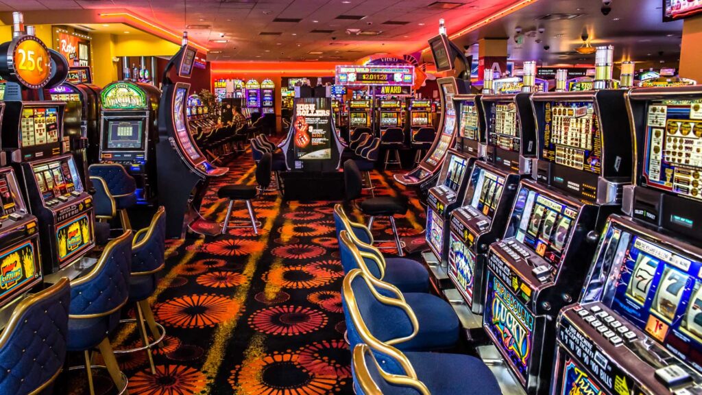Casino: Immerse yourself in a lively gaming atmosphere featuring a variety of slot machines and table games set in an energetic, vibrant environment.